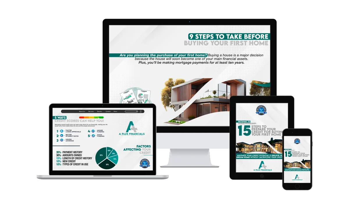 In addition to credit preparation, we also offer a detailed 9-step guide to help you navigate the home buying process. From budgeting to finding the right mortgage, this section provides essential tips for first-time buyers.